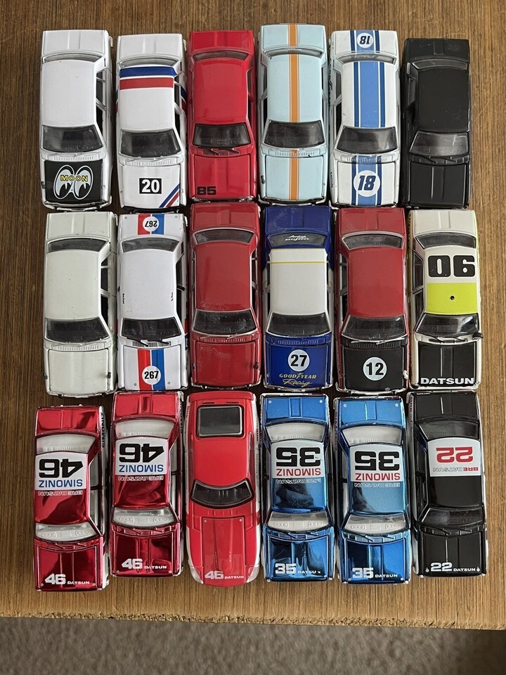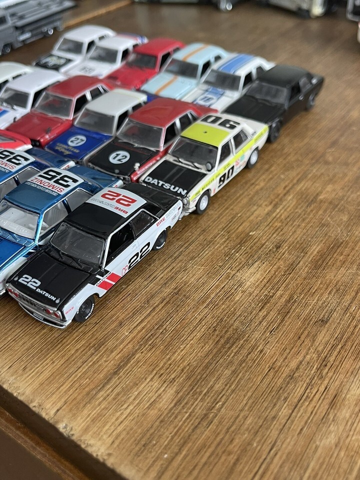 Huge lot of 18 greenlight jdm Datsun 510 and others. All are loose and from an assortment of regular chases. Some castline.
