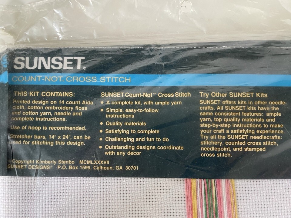 The "Sunset Count-Not Cross Stitch" needlepoint kit is a new and charming 10" x 20" kit featuring a theme of "God's Creatures." With the brand being Sunset, known for their quality and variety in cross stitch kits, this particular model offers a unique twist on traditional cross stitch with its "Count-Not" feature. Perfect for those interested in embroidery and cross stitch crafts, this kit provides everything needed to create a beautiful and intricate piece featuring various images of God's creatures.