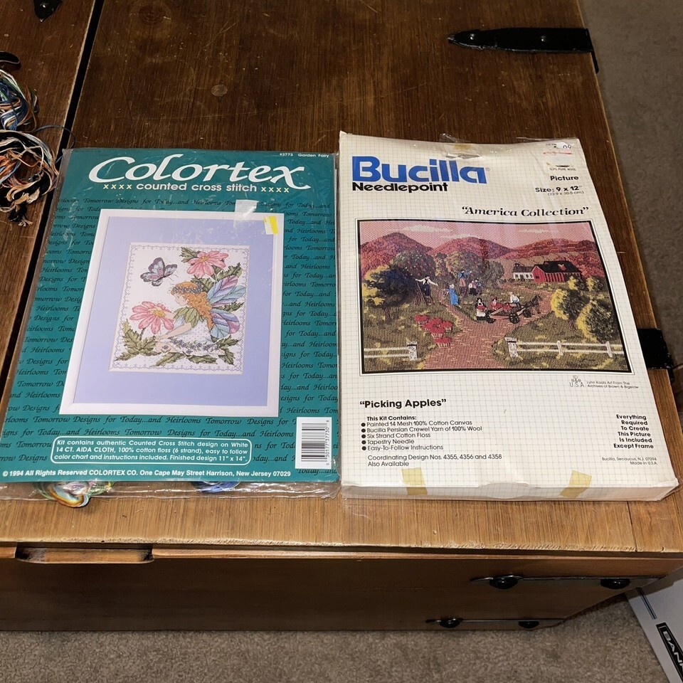 BUCILLA STITCHERY: AMERICAN Collection Picking apples 4357 & Garden Fairy 3773