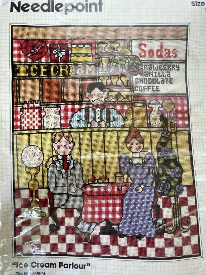 Vintage Bucilla Needlepoint Kit “Ice Cream Parlour” #4363 Size 11” X 14” New Kit