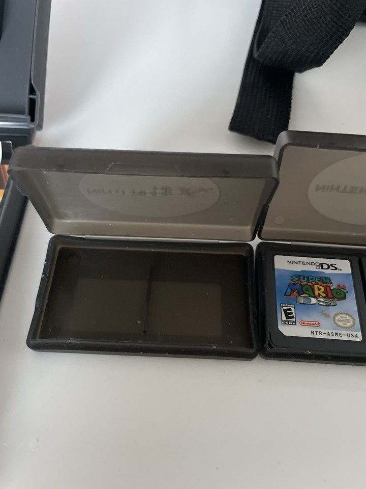 LOT Nintendo DS Black Mini Backpack Travel Bag, 6 GAMES, 1 Case, Mario Case/book