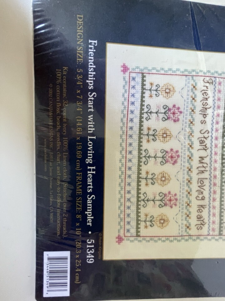 Vintage Candamar Designs Friendships Start With Loving Hearts Sampler 51349 New