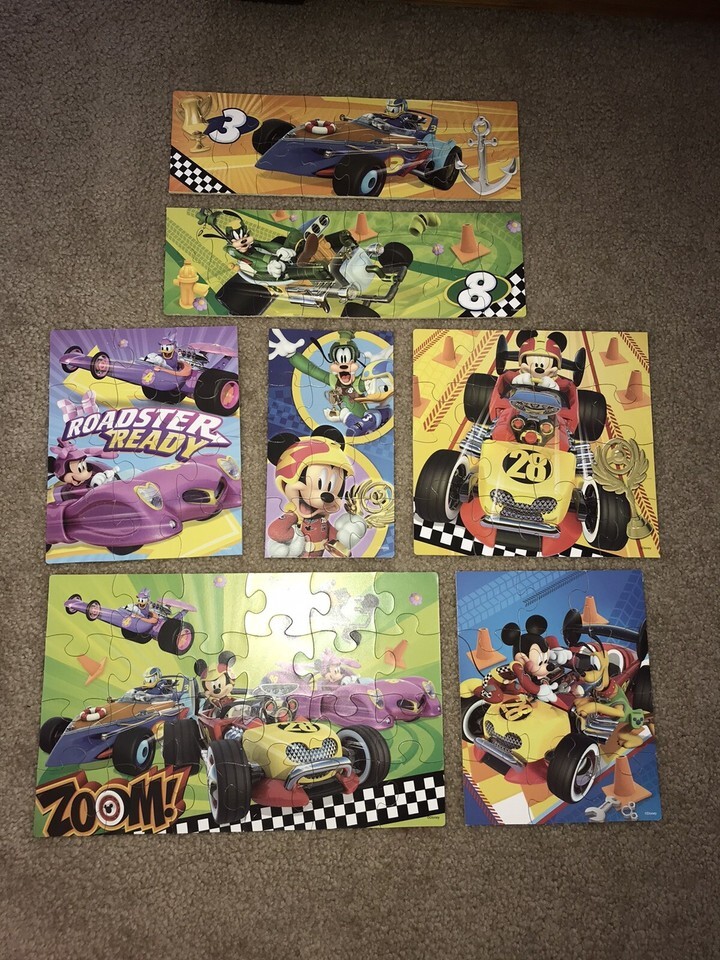 VINTAGE LOT 7 DISNEY WOODEN PUZZLES Mickey Mini Mouse Donald Duck Pluto Race Car. Condition is Used. Shipped with USPS Mail.