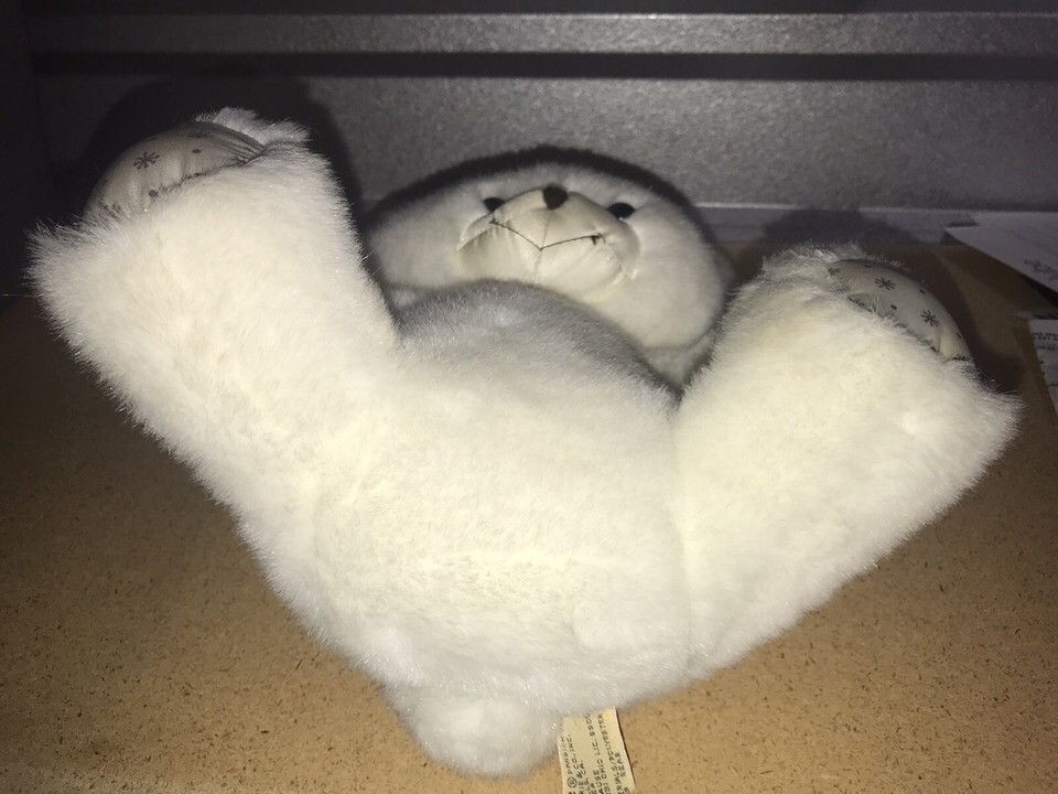 Vintage Teddy Bear Plush White Brown Flocked and similar items