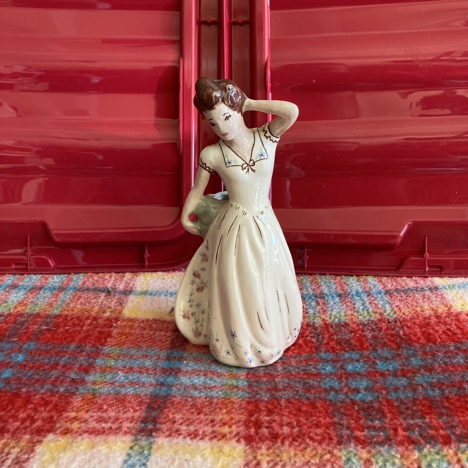 Vintage ENA Victorian Porcelain Girl In Flower Dress W/ Basket Collectable Rare