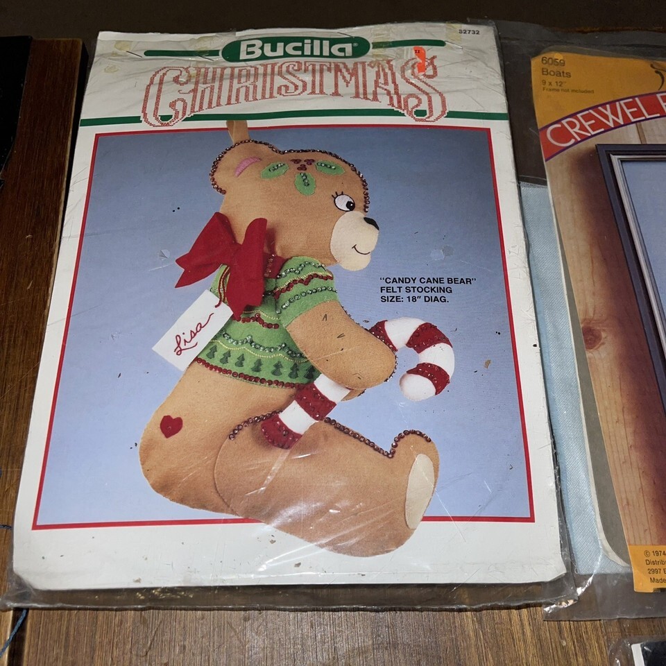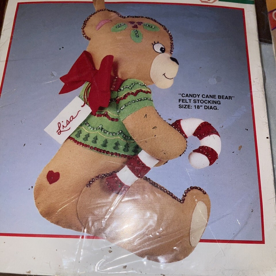 Bucilla Christmas bear Lisa candy cane bear felt stocking Disney home pool collection, Janlynn,