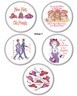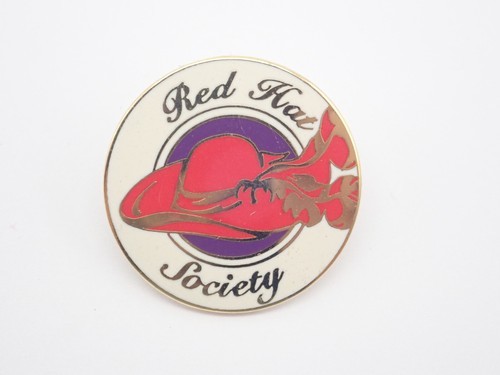 Set of 5 Red Hat hi society ladies, 3" button with pin back and magnet combo fastener. For the fridge, filing cabinet or golf club locker. Terrific small gift of friendship or thank you. These are a wonderful inexpensive small token for your Red Hat friends.