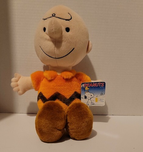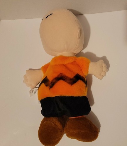 The product is a 14" plush Charlie Brown stuffed animal from the Peanuts Gang, featuring an orange shirt. This Kohl's Cares plush toy comes with tags and is in medium size, perfect for children who love the iconic Peanuts characters. The brown color and detailed design make it a great addition to any stuffed animal collection, bringing a touch of nostalgia and charm to playtime.