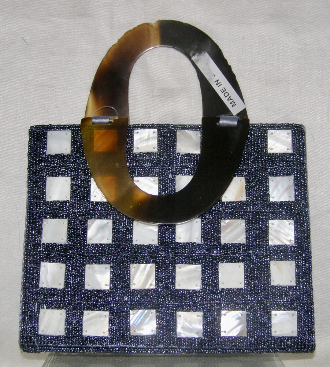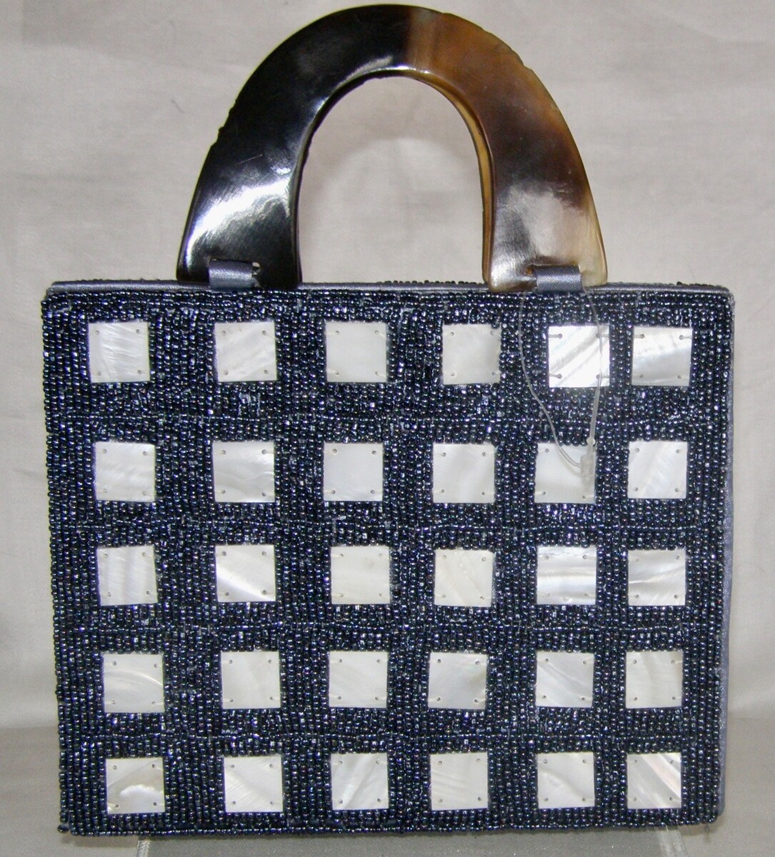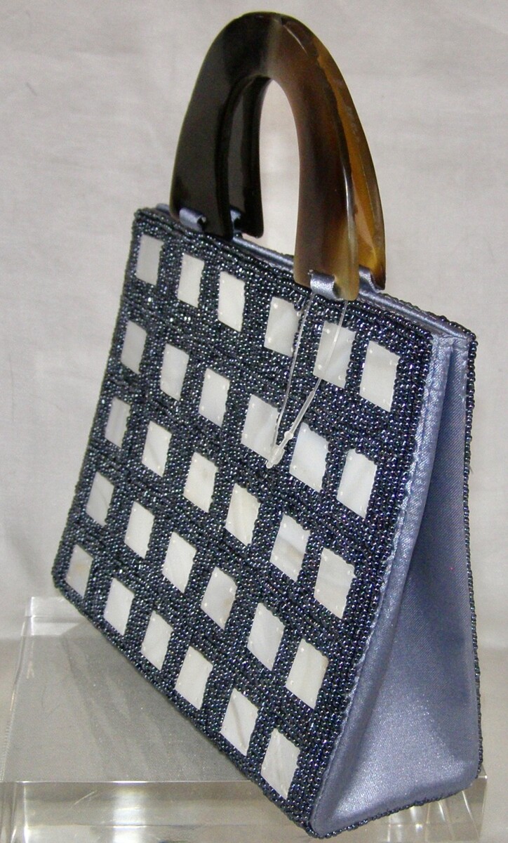 MOTHER OF PEARL + BEADED HANDBAG + TOP TORTOISE SHELL HANDLES |