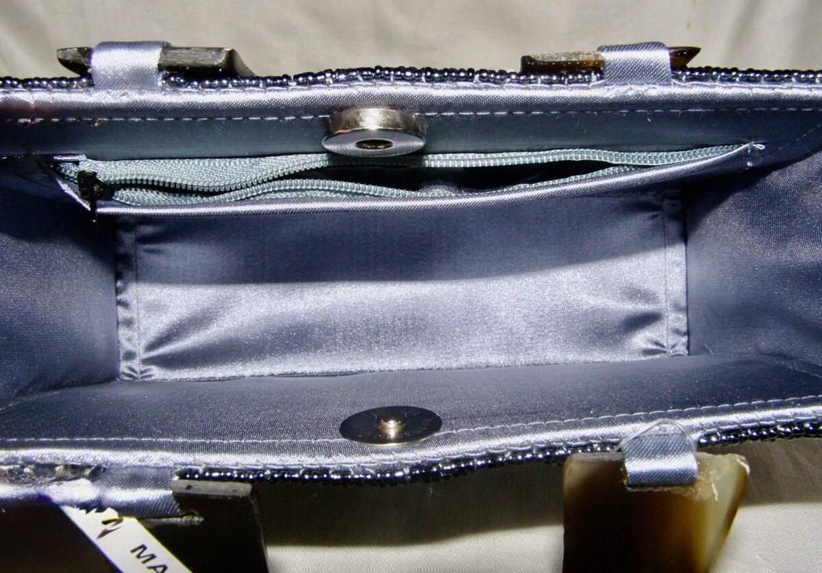 CENTURY MOTHER OF PEARL + BEADED HANDBAG + TORTOISE SHELL HANDLES |