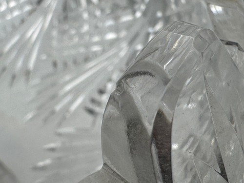 This centerpiece bowl measures 7 3/4" in height and 7 1/2" in diameter. It has several small chips on the inside of the rim (see pictures 9-12).