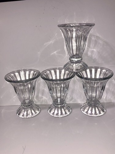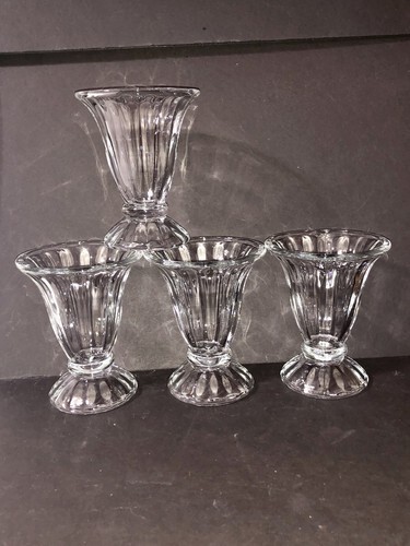 Vintage Set Of 4 Clear Glass Tulip Ice Cream Sundae Parfait Dessert Cup 5” Tall
