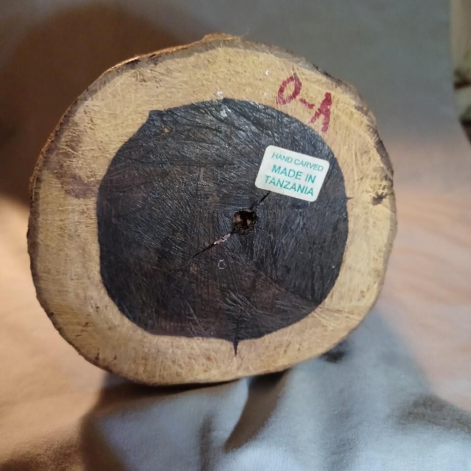 Bottom is has paper label that says Hand Carved Made In Tanzania.