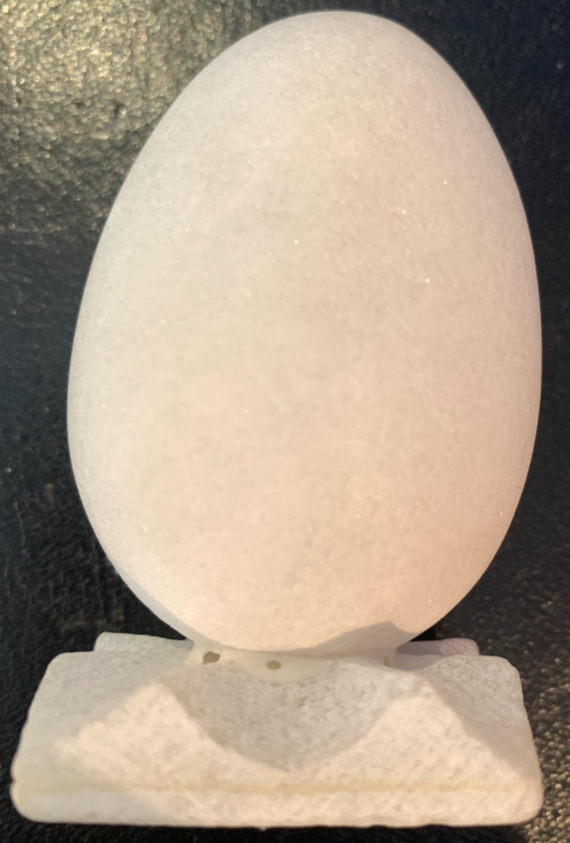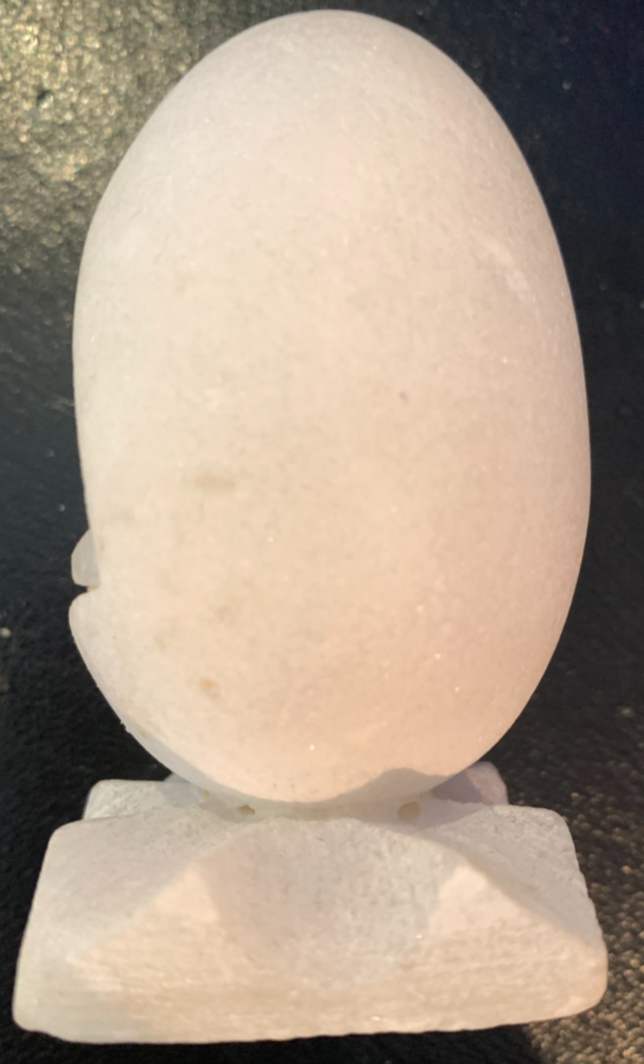 Handmade with intricate details, this original piece features a Nativity scene carved into an egg-shaped stone.