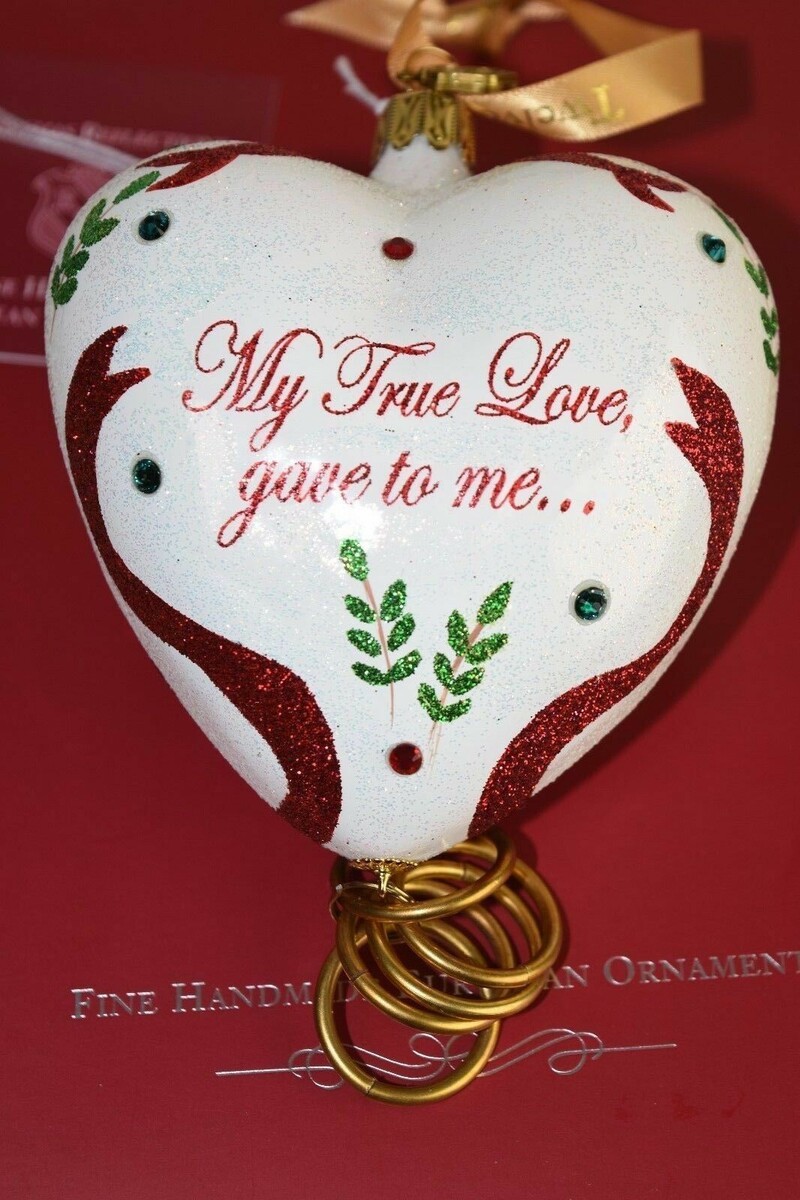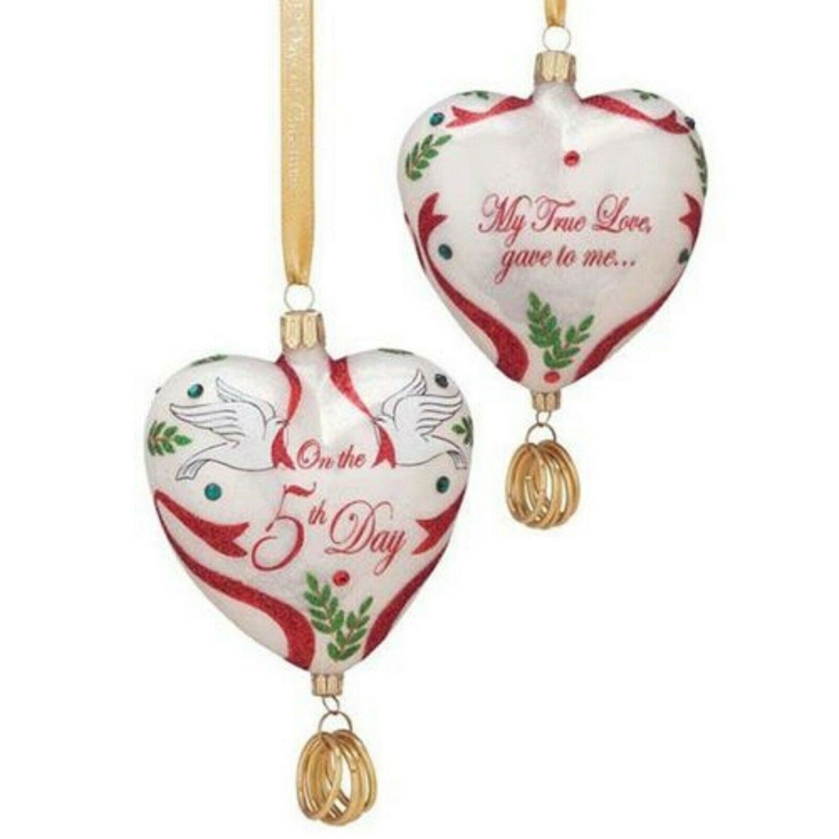 Reed & Barton 5 Golden Rings Glass Ornament Five 12 Days Of Christmas Heart NEW