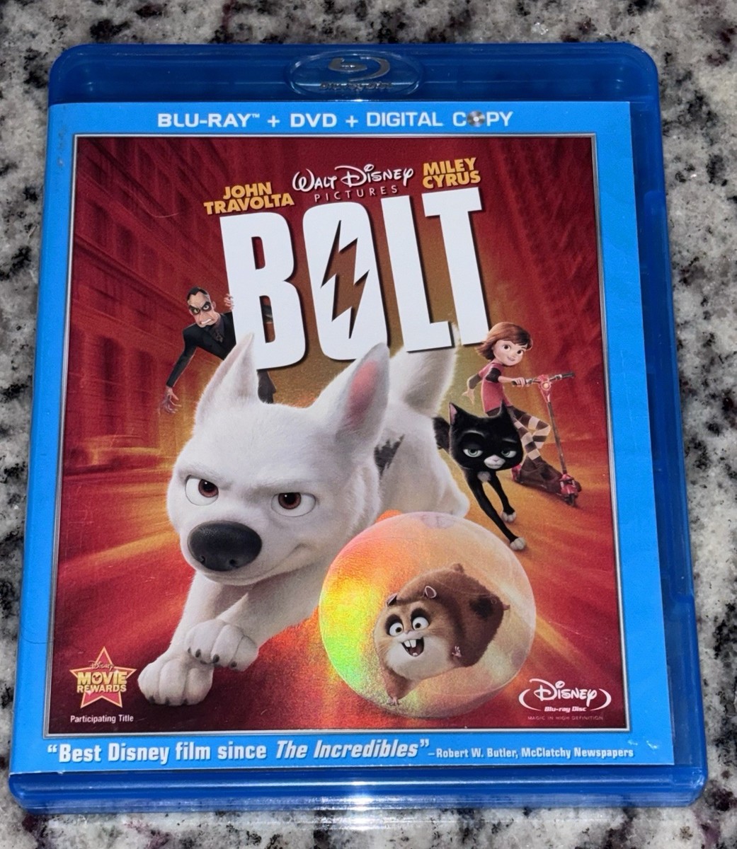 Bolt (Blu-ray Disc, 2009, With DisneyFile) Miley Cyrus John Travolta EUC