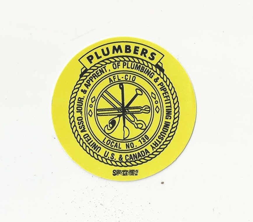UA CHICAGO PLUMBERS UNITED ASSOCIATIOIN retro Yellow Sticker.