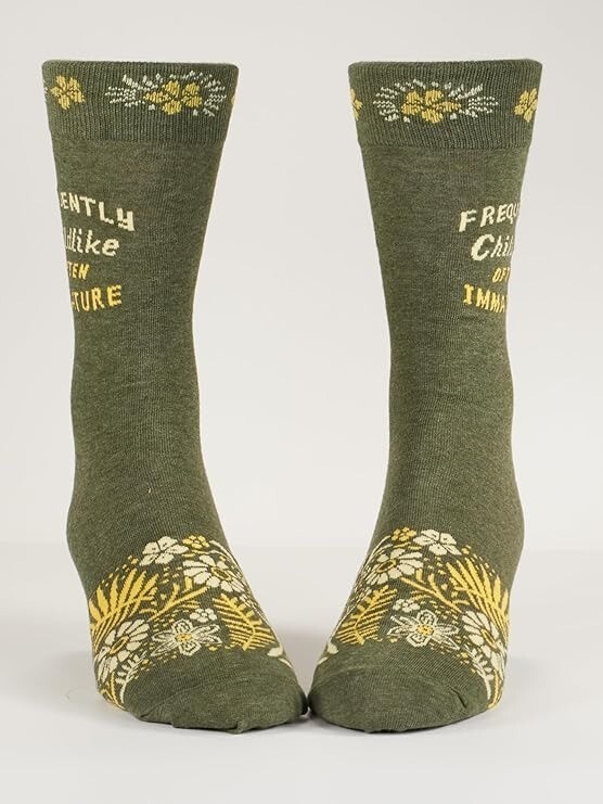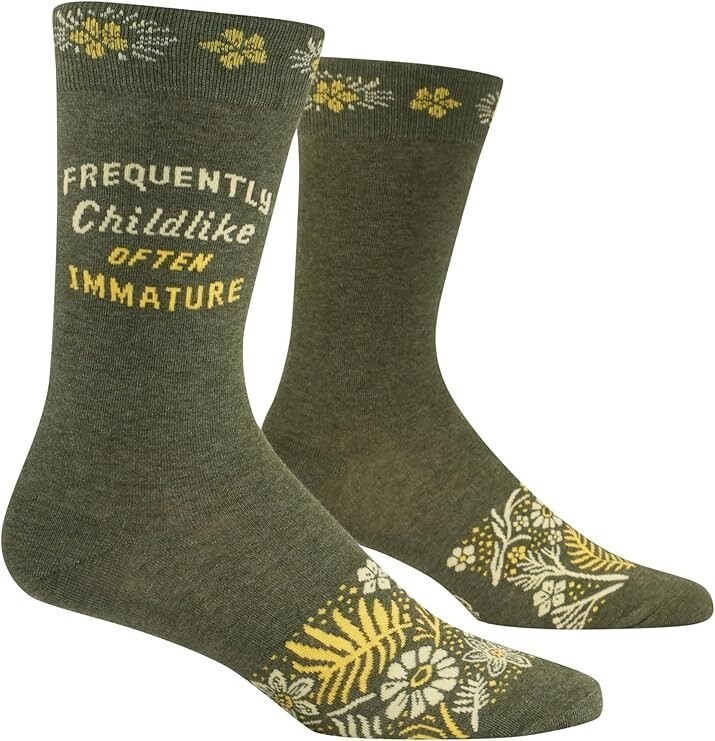 Blue Q Men's Crew Socks, "Frequently Childlike Often Immature", size 7 - 12