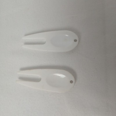 This listing is for a lot of 2 golf divot tools. They are made of plastic. Both of them feature the GE (General Electric) logo. They are gently used.