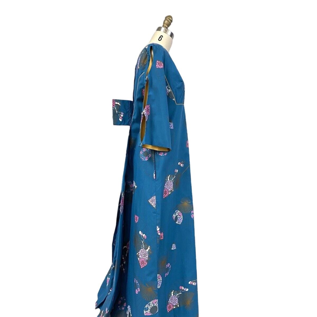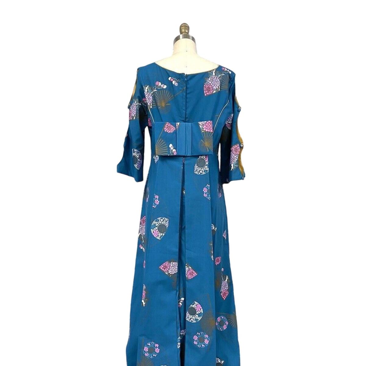 VTG 1960s Alfred Shaheen Hawaiian Maxi Dress Asian Fan Print NWT