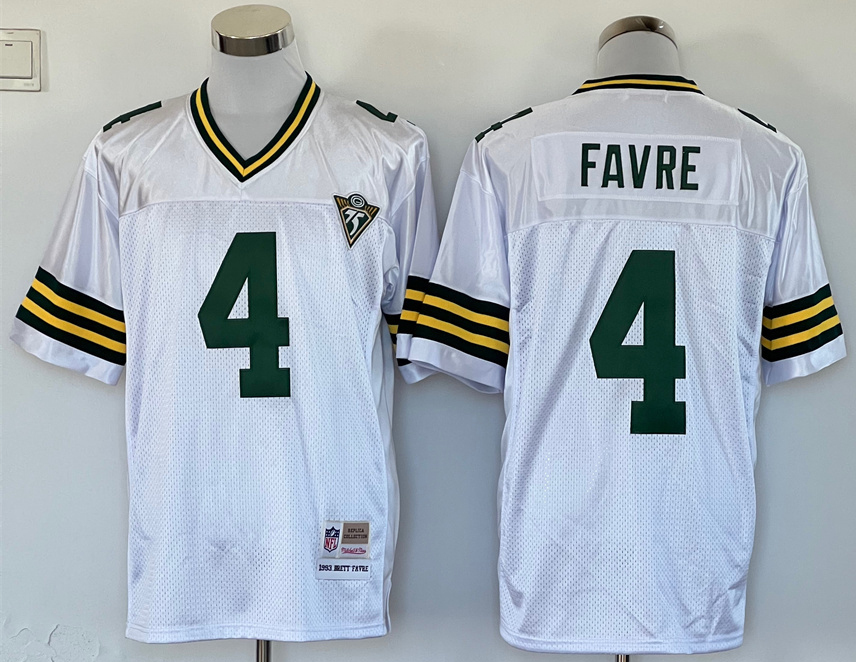 Men's Brett Favre #4 Stitched Jersey White Green