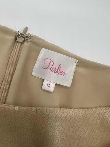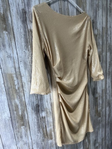 Parker Woman Sequin dress in Champagne M Medium 3/4 sleeve Ruched Mini B66