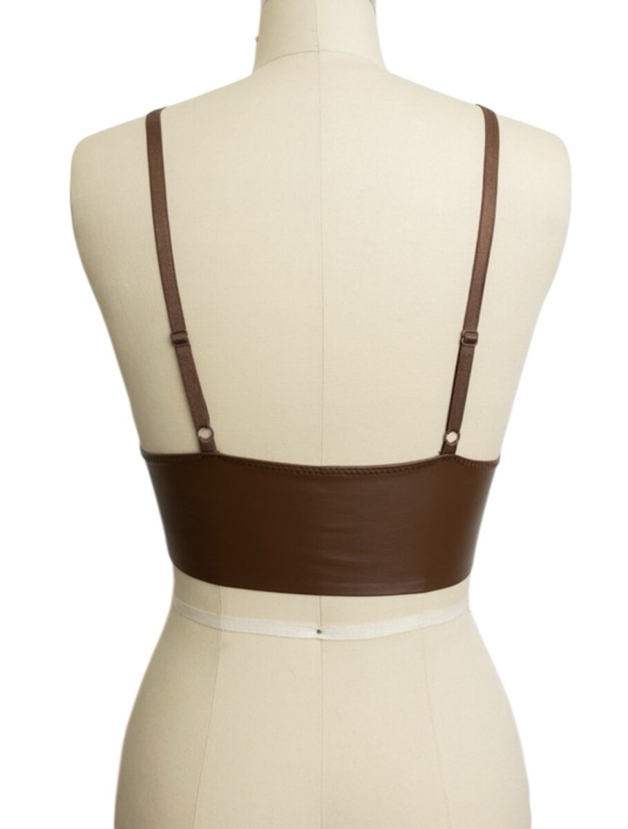 Faux Leather Longline Bralette Top Size L features: