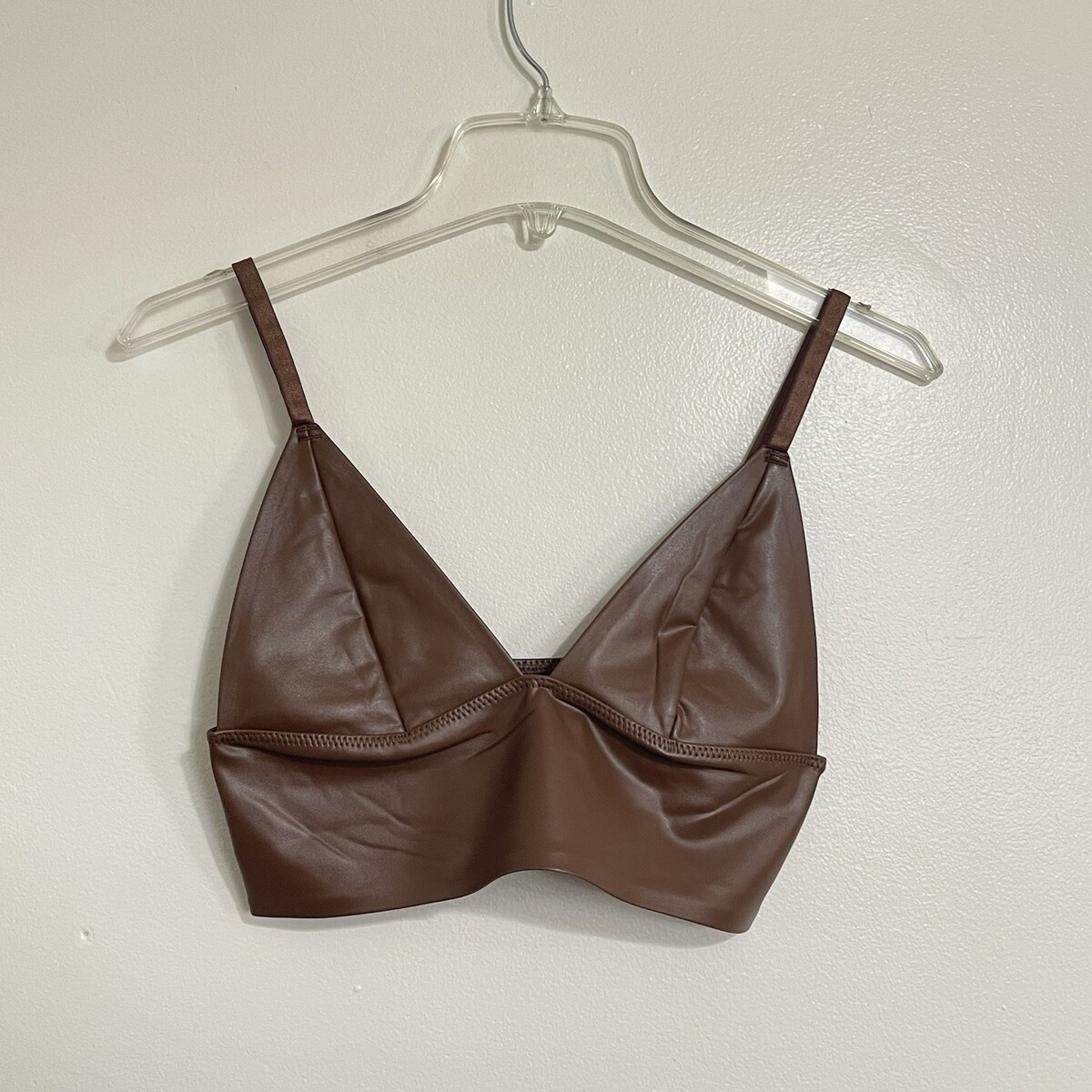 Faux Leather Longline Bralette Top Size M Dark Brown V-Neck Spaghetti Strap NWT