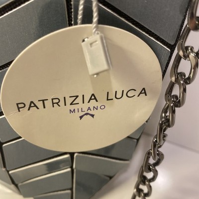 PATRIZIA LUCA Geometric Tiles Convertible Purse Hand Bag Blue Silver Italian NWT