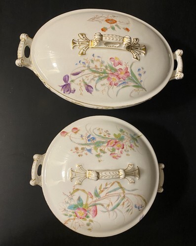 Haviland Ch Field Limoges SET of 2 France Soup Tureen Art Nouveau Floral 12” 10”