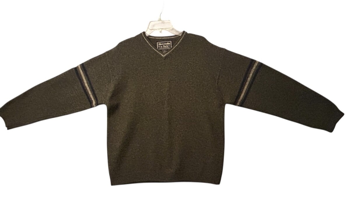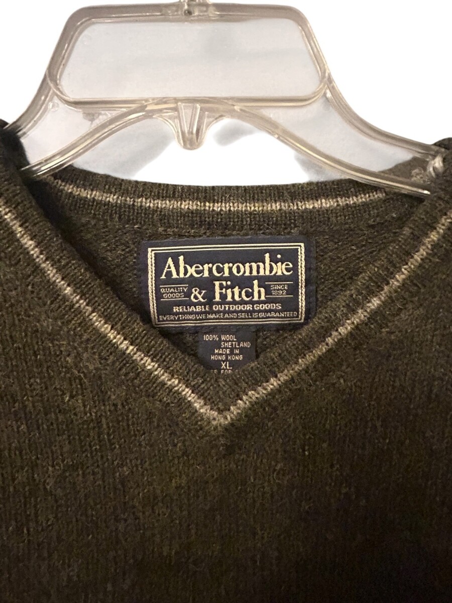 Abercrombie & Fitch 100% Shetland Wool V-Neck Sweater Mens XL Gray Long Sleeve