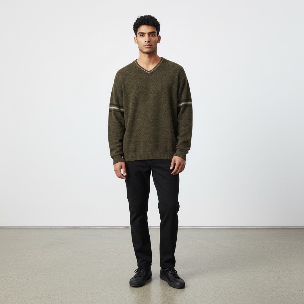 Crafted from the rugged Shetland wool of the Scottish isles, this sweater tells a tale of timeless autumn evenings. Its graphite gray hue and striped sleeves evoke both sophistication and the wilderness, making it a trusted companion for both adventures and refined gatherings.