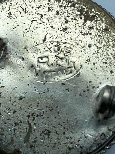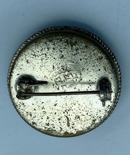 The brooch is an original piece likely from the 1940-1950s and is signed by the artist maker RM. It comes from Italy and is a unique piece of vintage jewelry. Perfect for those who love flowers and want to add a touch of old-world charm to their collection.