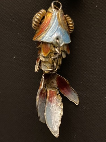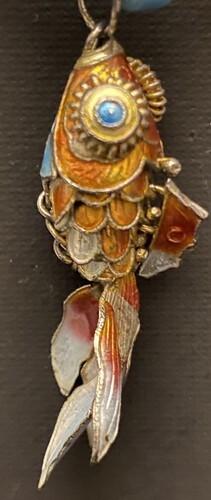 Cloisonne Enamel Articulated Koi Fish Pendant Necklace Vintage Charm.