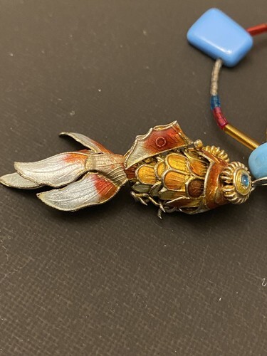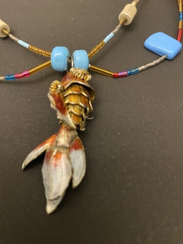 Cloisonne Enamel Articulated Koi Fish Pendant Charm Glass Beads Necklace Vintage