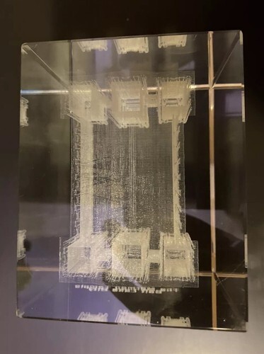 Crystal cube paperweight 3-D Etched Mormon Temple St. Louis