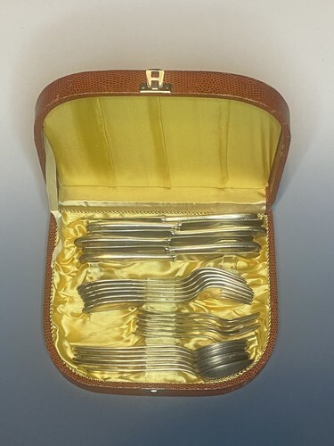 Homag German Vtg 24 Pc 6 Settings Silver Plated Art Nouveau Silverware Case HFL4