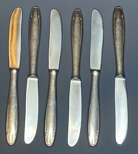 This German flatware SET of 6 includes place settings of 4 peices (dinner fork, salad or dessert fork, dinner spoon, and dinner knife). With its beautiful Art Nouveau style and intricate detailing, this set is sure to impress your guests. Crafted from high-quality materials (all silver plated with the knife blades labeled Rostfrei for ?stainless?, this 24-piece flatware set is perfect for formal occasions or everyday use. Includes original case to keep your flatware safe and organized.