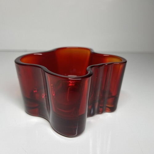 Alvar Aalto Iittala Tea Light Savoy Bowl 55mm 2" Ruby Red EXC, Sticker Label On