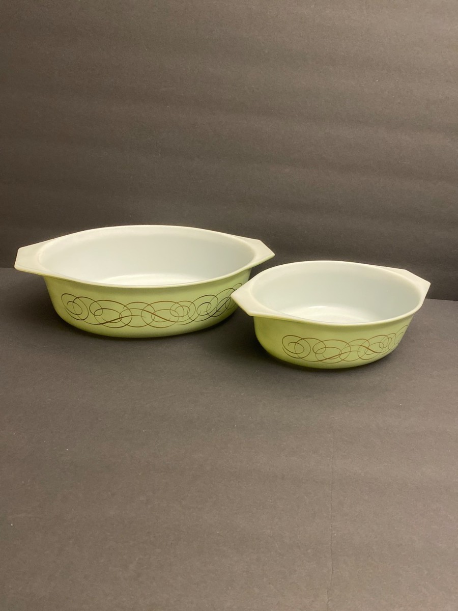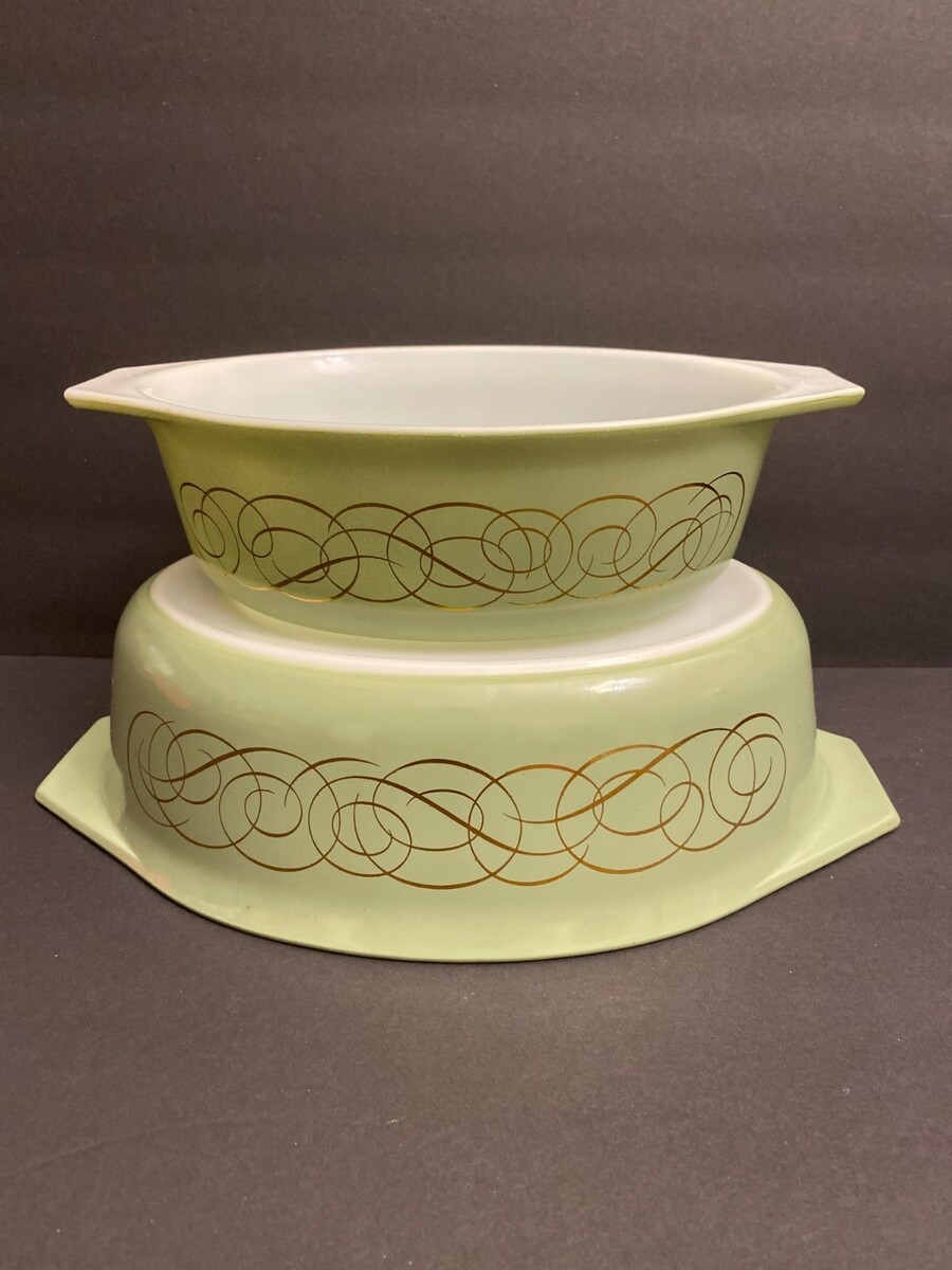 Pyrex Sage Green Golden Scroll SET of 2 and 18 similar items