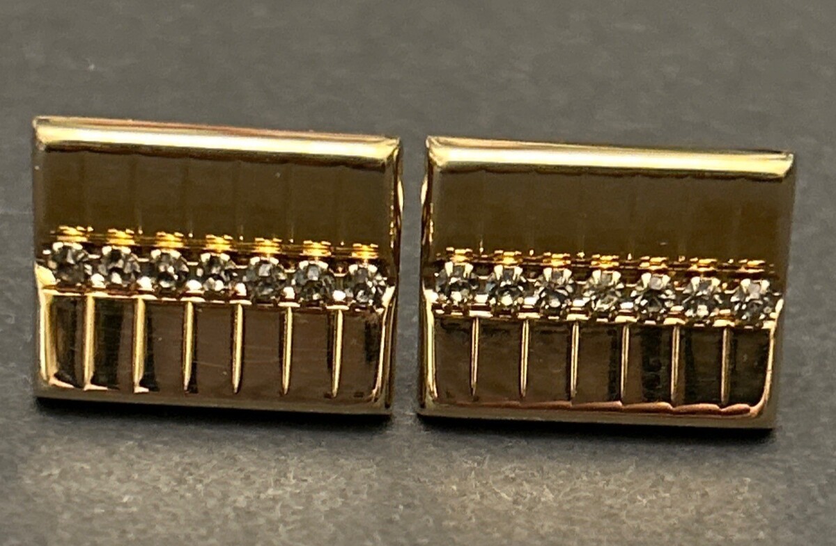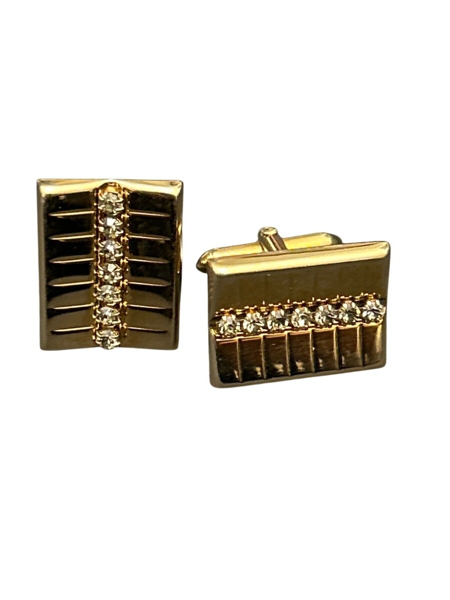 Enhance your dress and formal wardrobe with these vintage gold-tone cufflinks featuring a sophisticated rhinestone design. A timeless accessory for standout style.