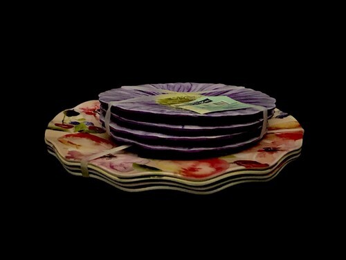 Melamine SET 8 Dinner & Salad Dessert Plates Dinnerware Fruit 4 Designs 11" NWT