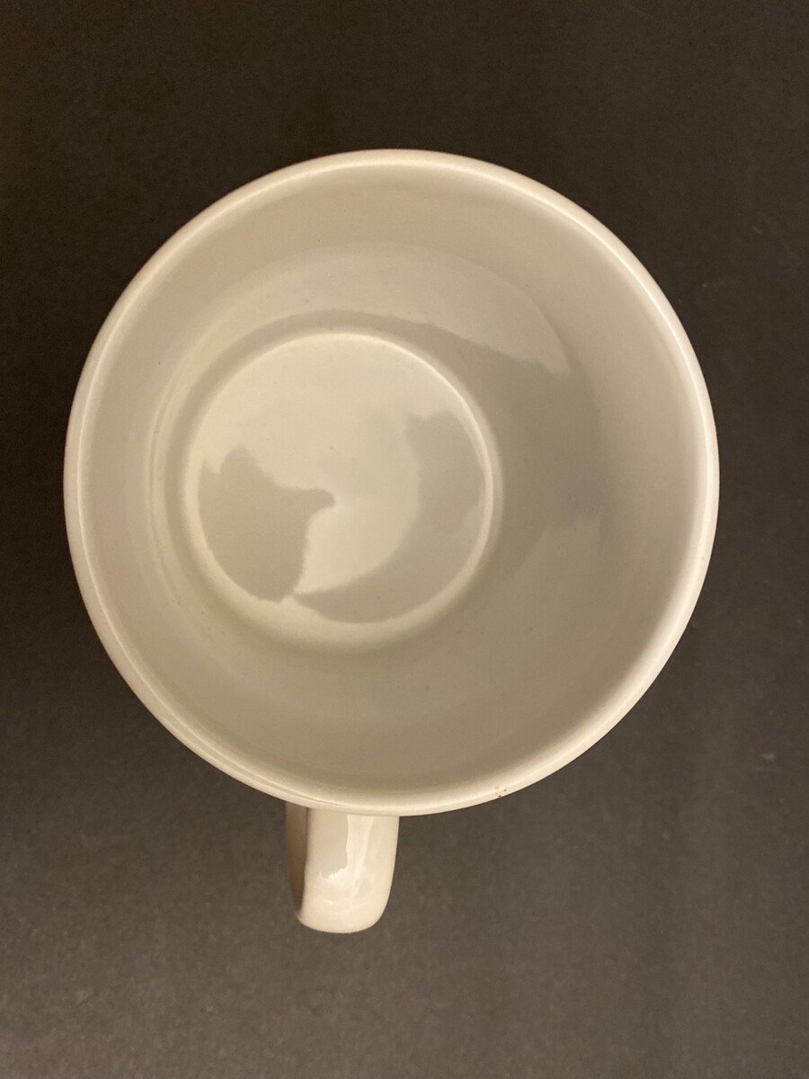 Pre-owned with very minor wear on base, no chips or cracks. Although this mug was preowned, it was carefully cared for and has no evident damage or signs of usage.