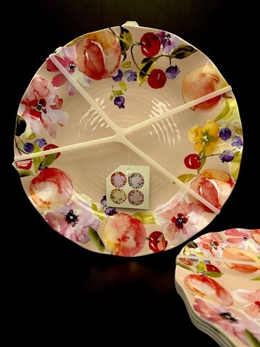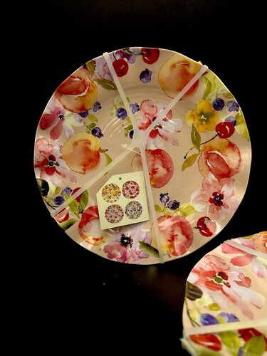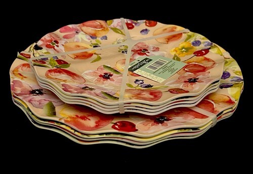 Melamine SET 8 Dinner & Salad Dessert Plates Dinnerware Fruit 4 Designs 11" NWT