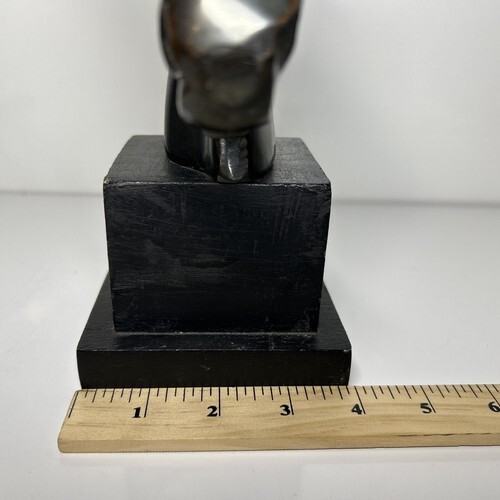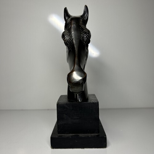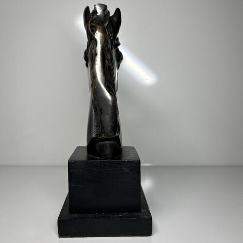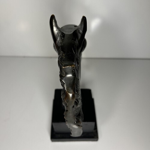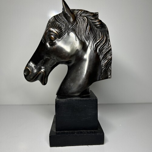 This exquisite bronze horse bust head book end display is a magnificent addition to any art collection. Crafted with intricate attention to detail, this sculpture captures the essence of equine beauty. The bust format is perfect for display on a shelf or table, and the bronze material adds a touch of elegance. The base is crafted from a sturdy wood with a felt bottom.