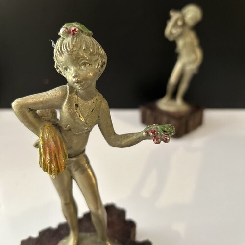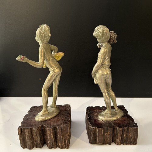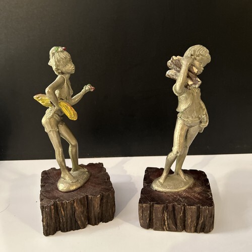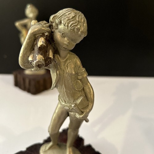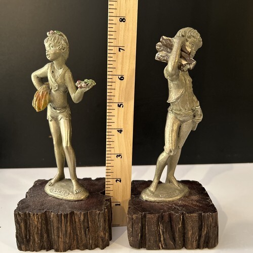 Pewter Figurines Peltro Cesellato Mano made Italy Inverno boy & Estate Girl 7.5”