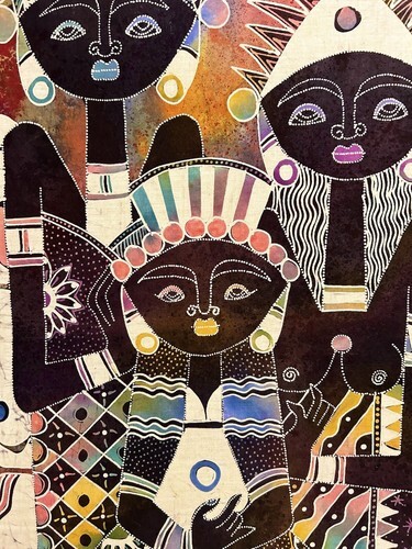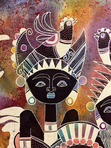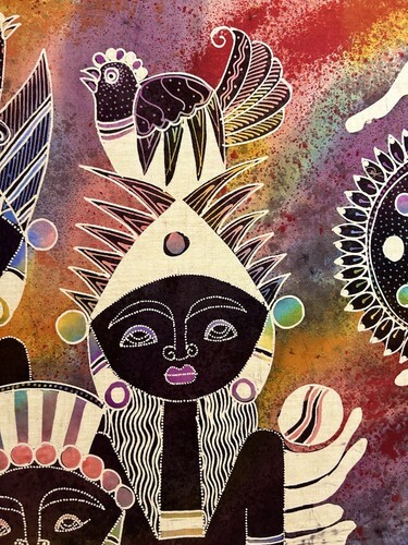 Gianto Large Batik Fabric Art King Queen Child Tribal Vintage But Modern Family