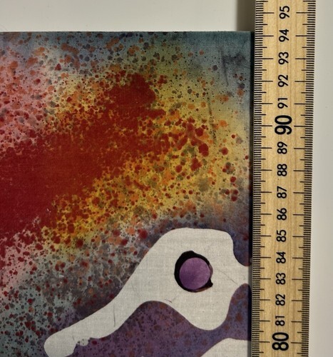 Condition: This piece is in fantastic, pre-owned condition with no signs of damage or excessive wear. The fabric is still tightly pulled, and there are no stains, odors, smudging of colors like from improper cleaning, etc. This is a beautiful piece that looks like it came off the gallery wall yesterday.
