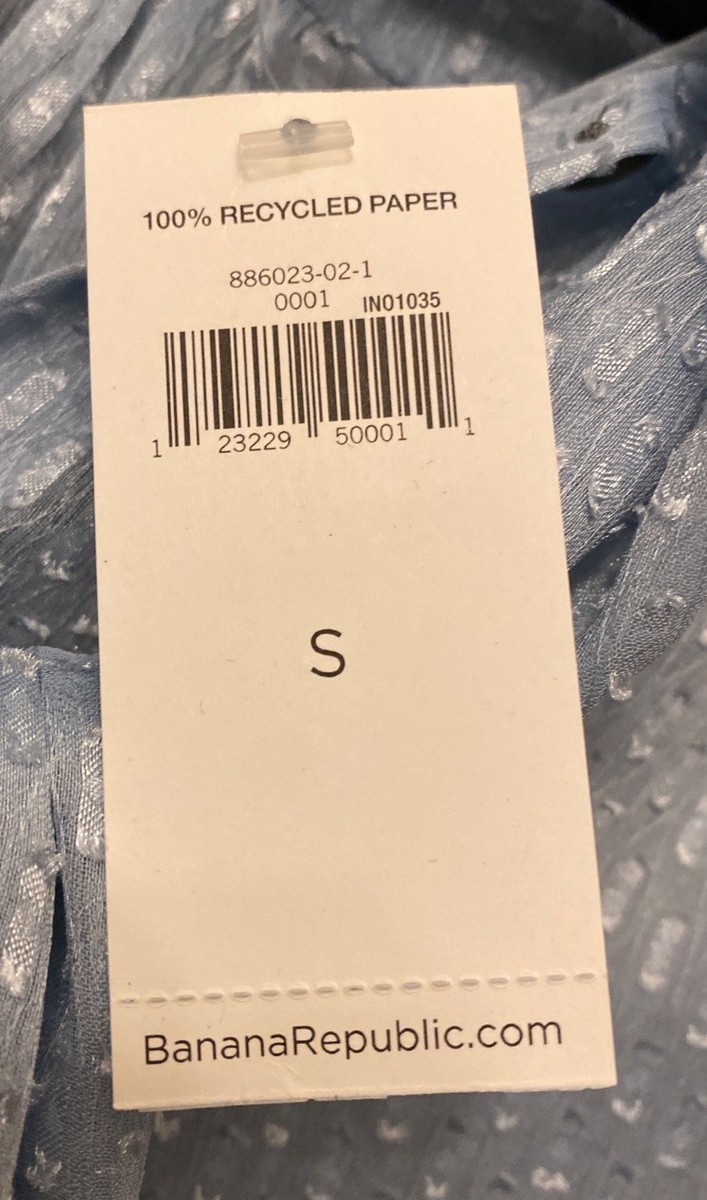 Banana Republic Sheer Lt Blue Polka Dot Textured Bow Tie Blouse S Small NEW NWT