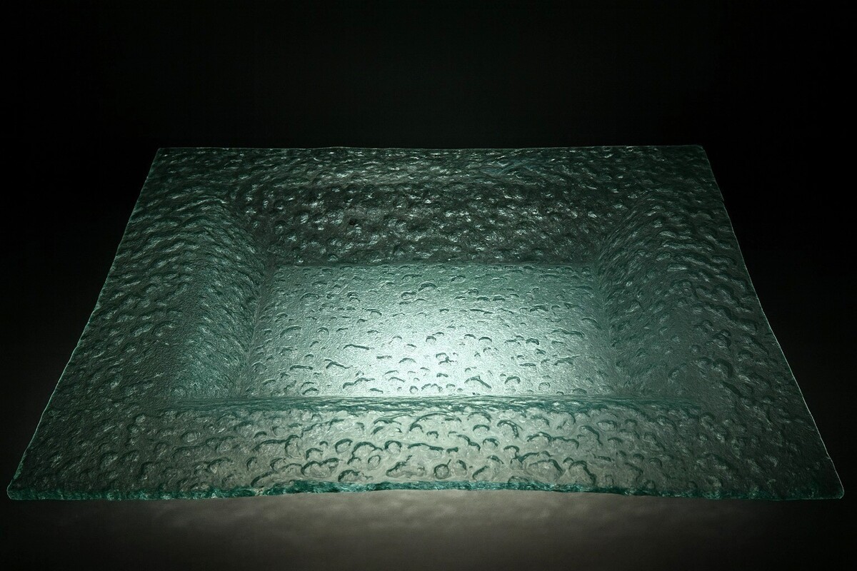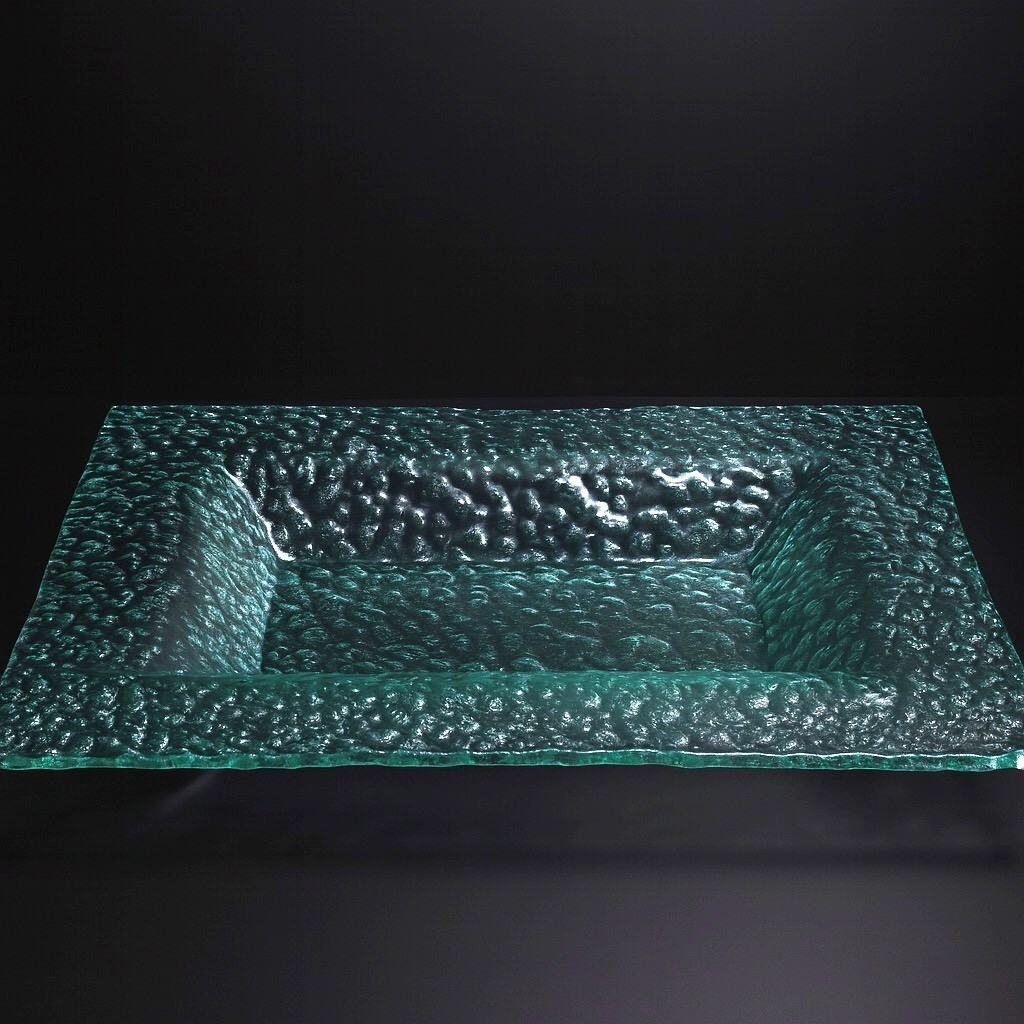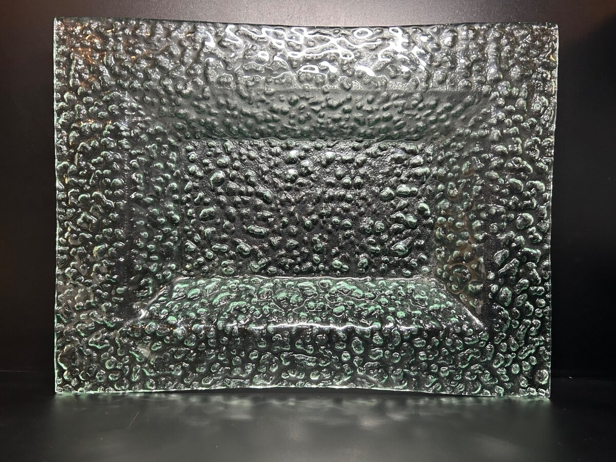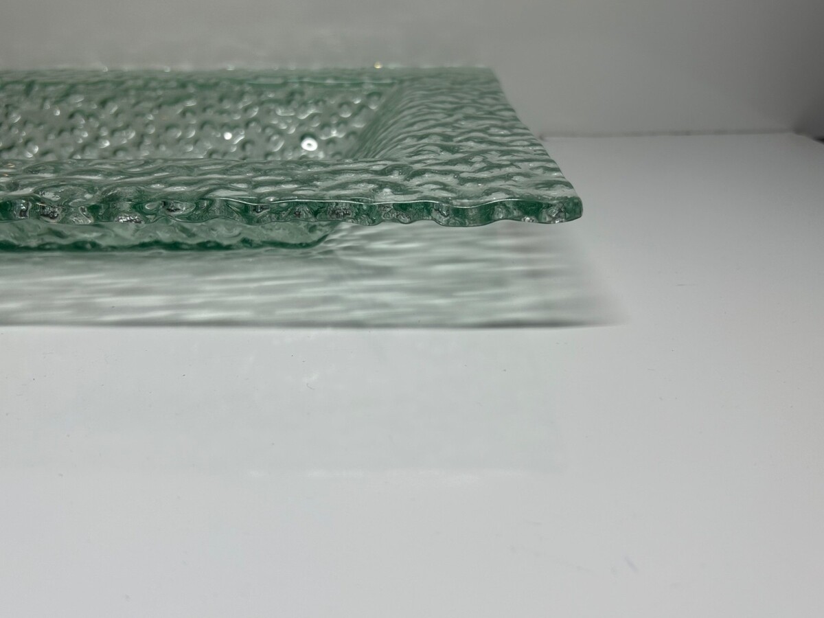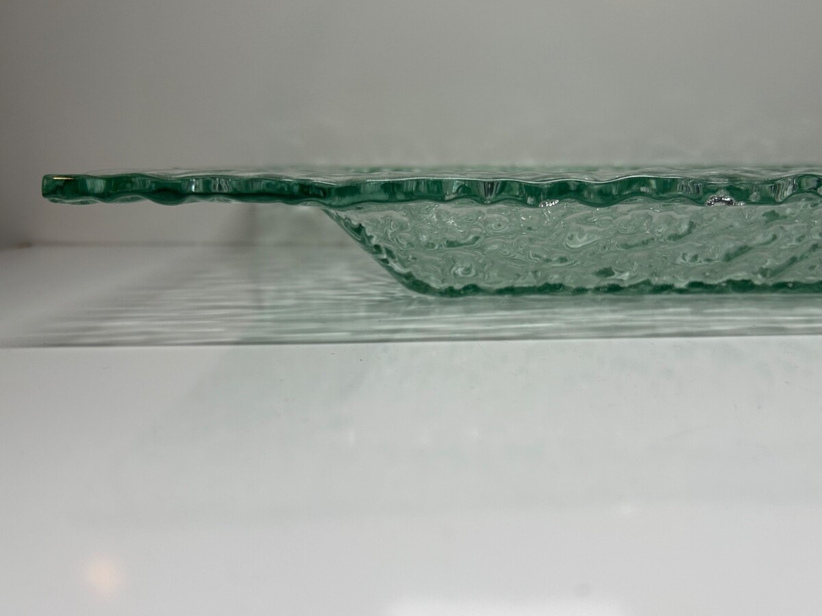 Recycled Art Glass Rectangular Tray with Bubble Texture in Light Green 18 x 13.5